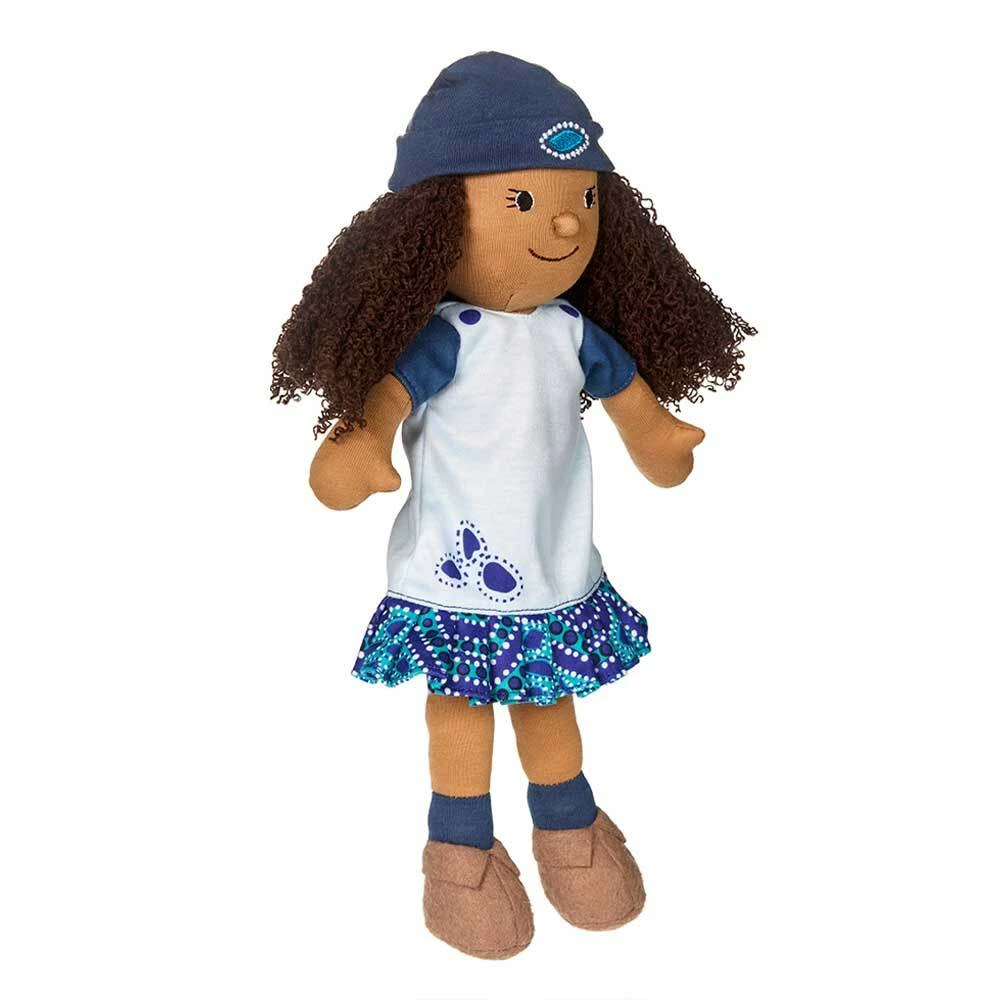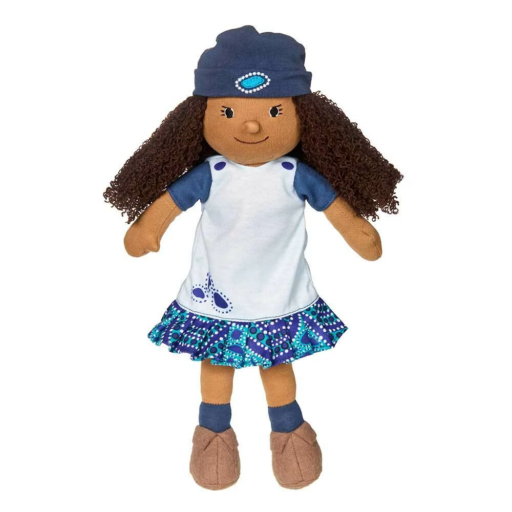 Kiya means “hello” in Noongar language. Kiya is from Noongar country, which is in the southern corner of Western Australia. Noongar country is one of the largest Indigenous cultural blocks in Australia, consisting of 14 language groups. Kiya is a modern representation with connection to land, being a Noongar girl. Kiya will be a regular on PlaySchool , joining the likes of Big Ted, Little Ted, Humpty and Jemima, along with the rest of the Play School favourites. Kiya stands at 32cm.