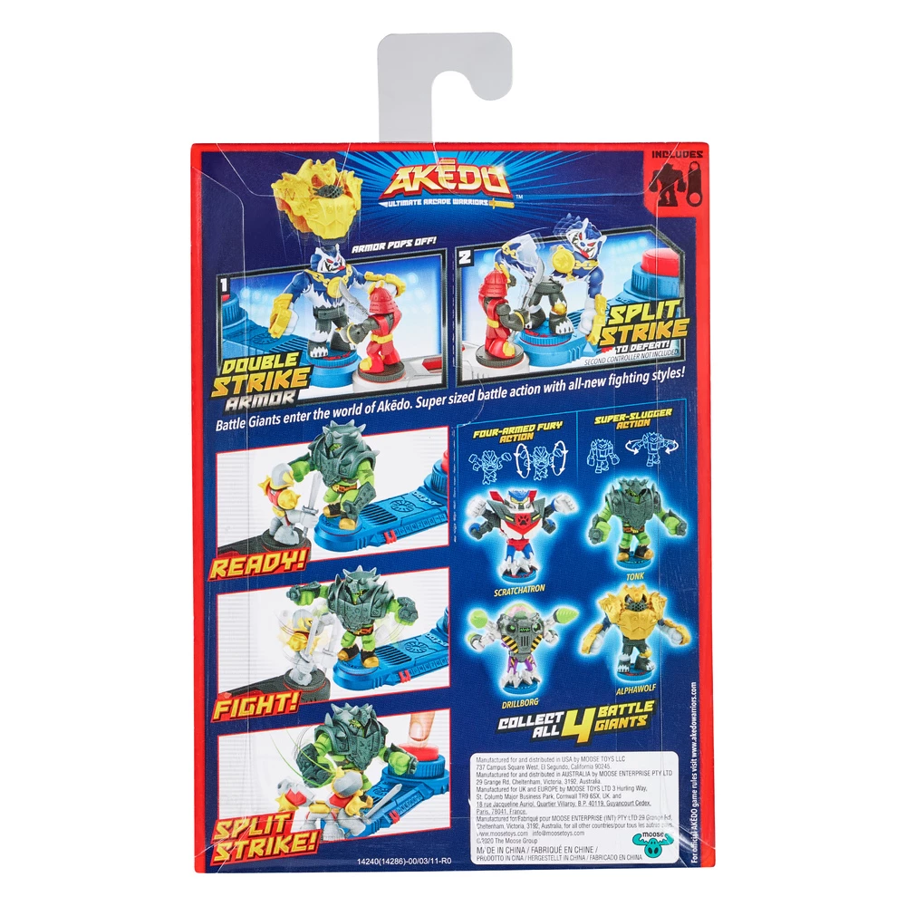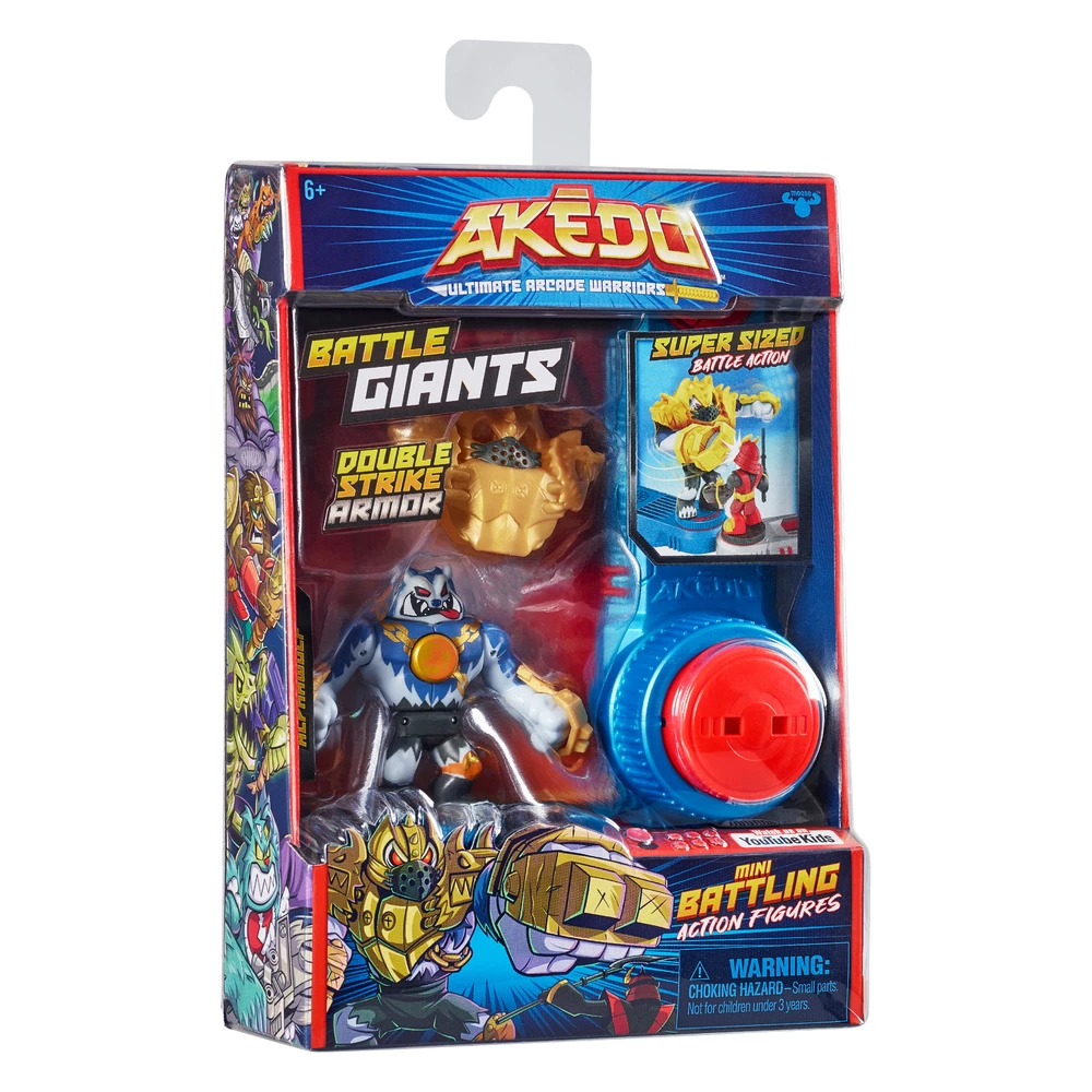 Prepare for all new supersized battle action with Akedo Battle Giants. These Arcade Warriors have double the defence with double strike armor! Hit them once to remove their armor then hit them again with a Split-Strike! There are also 2 new fighting styles – four-armed fury action and super slugger action – to level up your skill and strategy. Collect all 4 new Battle Giants!