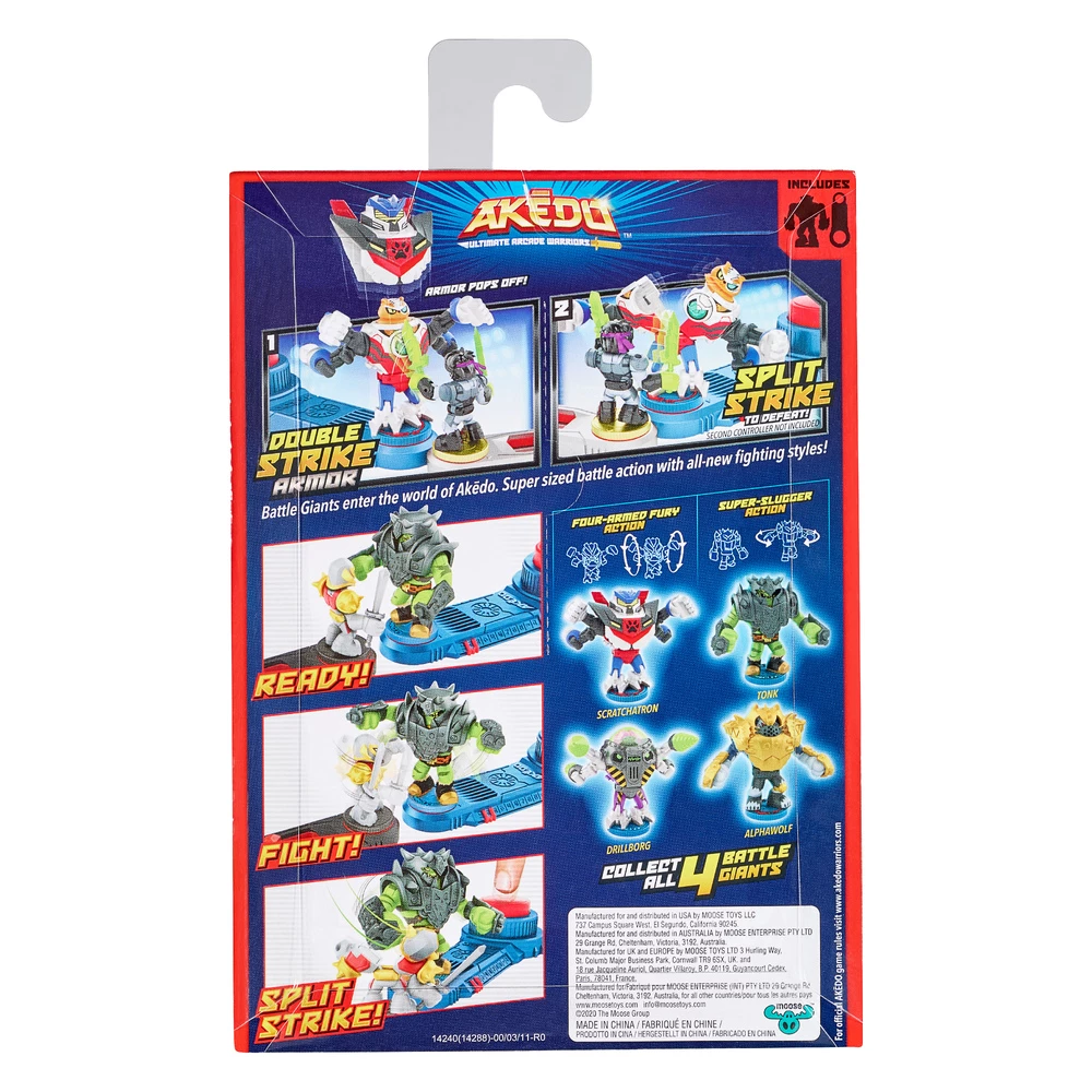 Prepare for all new supersized battle action with Akedo Battle Giants. These Arcade Warriors have double the defence with double strike armor! Hit them once to remove their armor then hit them again with a Split-Strike! There are also 2 new fighting styles – four-armed fury action and super slugger action – to level up your skill and strategy. Collect all 4 new Battle Giants!