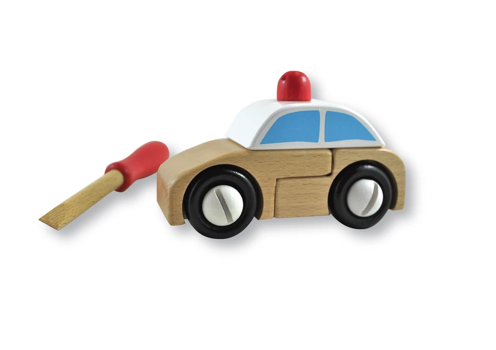 A 13 piece construction set made from beech wood. The set is joined together with screws that can be tightened with the screwdriver provided.