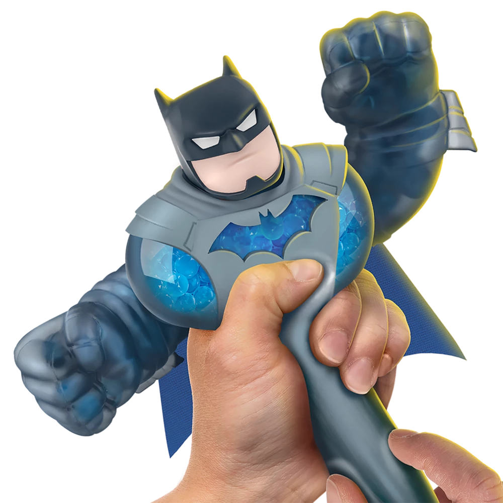 This Goo Jit Zu DC Hero can stretch, twist and squish his unique Goo filling and move in a way like he never has before! With his extra, super squishy filling you can squeeze his body and watch his Gel Bead filling bulge out! Play with your Batman action figure in a new GOOEY way and help save the day – with NO mess!