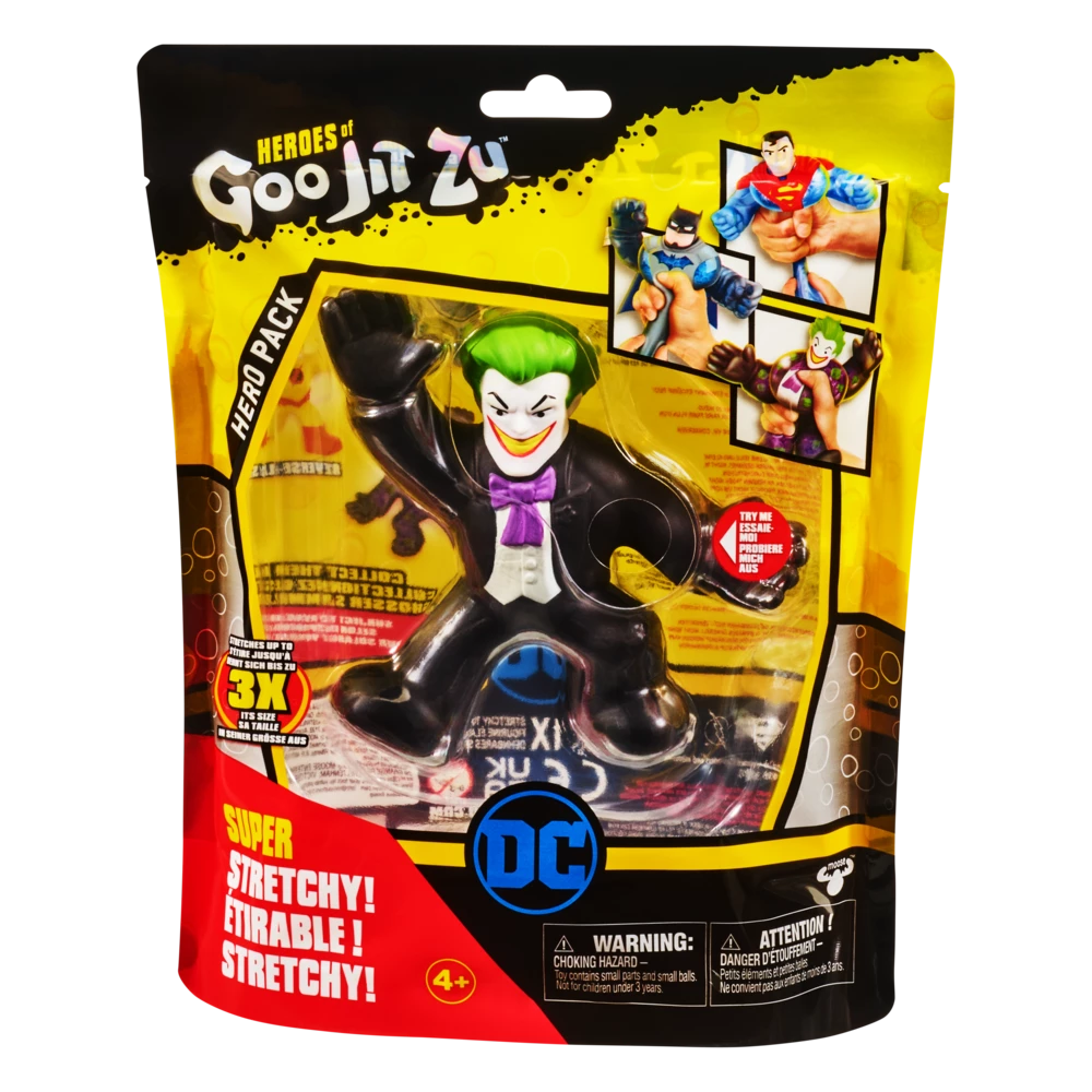 This Goo Jit Zu DC Villain can stretch, twist and squish his unique Goo filling and move in a way like he never has before! With his extra, squishy filling you can squeeze his body and see skulls appear inside his purple gel bead filled body! Play with The Joker action figure in a new GOOEY way – with NO mess!