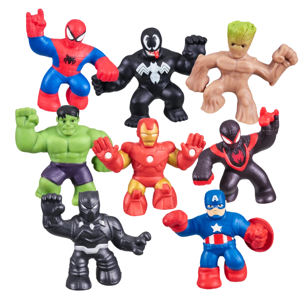 Each Mini Marvel Hero can stretch their amazing bodies up to 4 times their size. Stretch and wrap them around each other and watch them battle as they return to their original shape and size. There are eight Super Stretchy Mini Figs to collect. All your favourite Marvel Heroes are available in this Mini Goo Jit Zu range including Spider-Man, Hulk, Iron Man, Black Panther, Miles Morales, Captain America, Venom and Groot. These awesome toy figures are super durable.