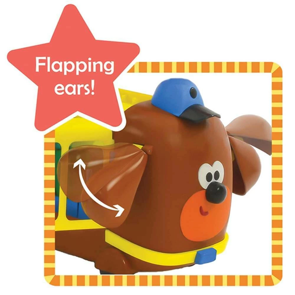 The Hey Duggee Adventure Bus is perfect for fun role-play. Packed with fun and action: ideal for curious kids! Push the bus and Duggee’s ears hilariously flap up and down! Push down on Duggee’s hat.