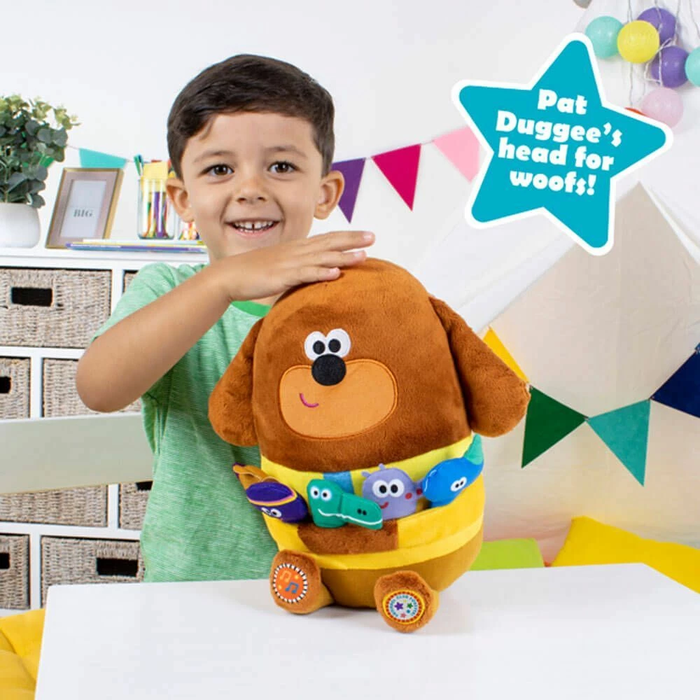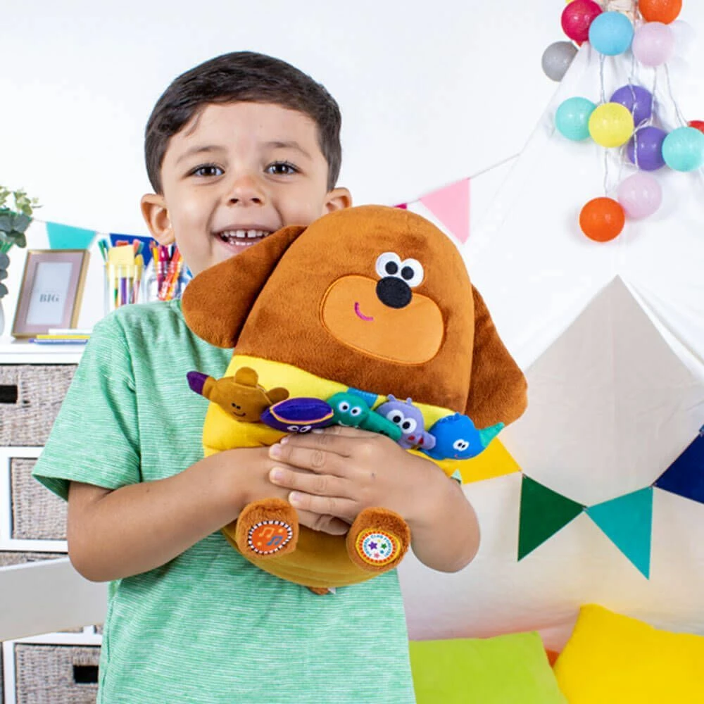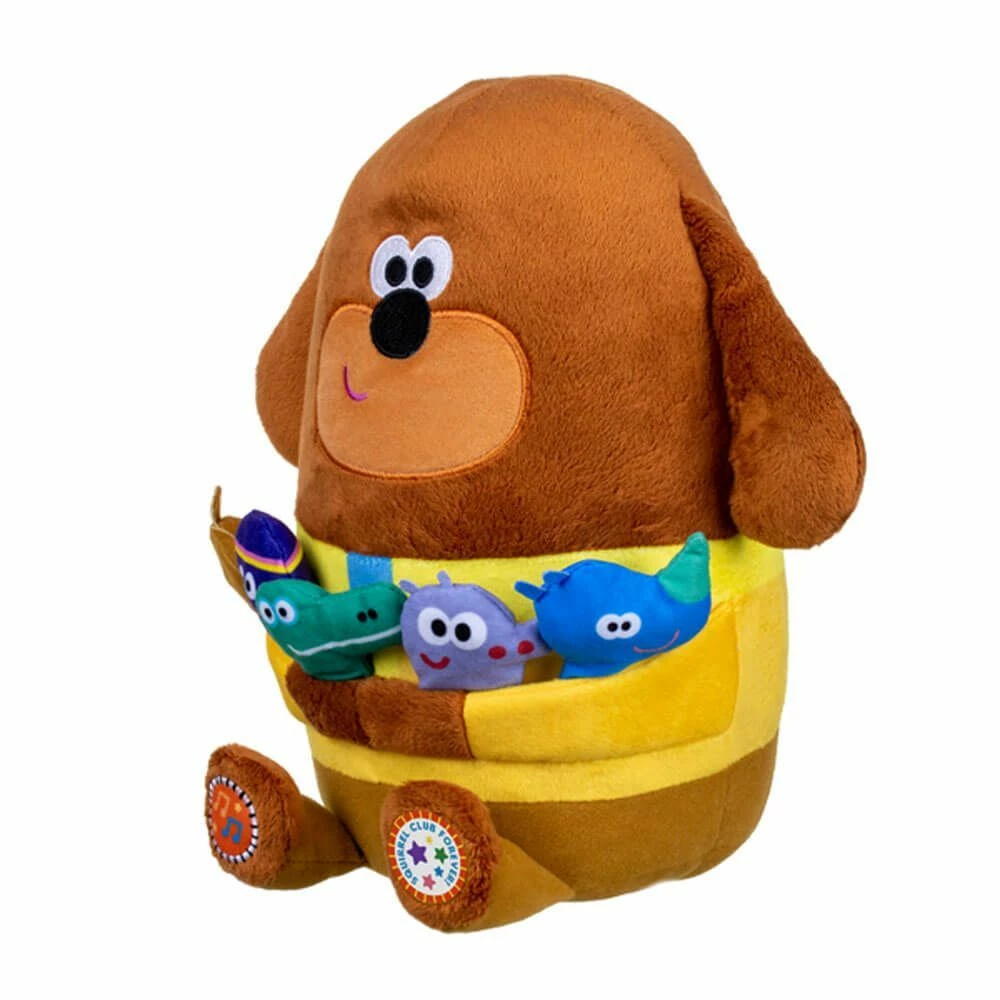 Hey Duggee and Musical Squirrels soft toy is super cute, super soft and made from 100% recycled material. Choose from 3 play modes, gently pat Duggee on the head for fun WOOF sounds or press his footpads for story mode or music and silly sound mode. Each Squirrel plays a different part of the theme tune, get the order right to hear the theme tune. Duggee and the Squirrels are featured in the iconic Duggee hug pose. A perfect gift for pre-schoolers and fans of this popular character.