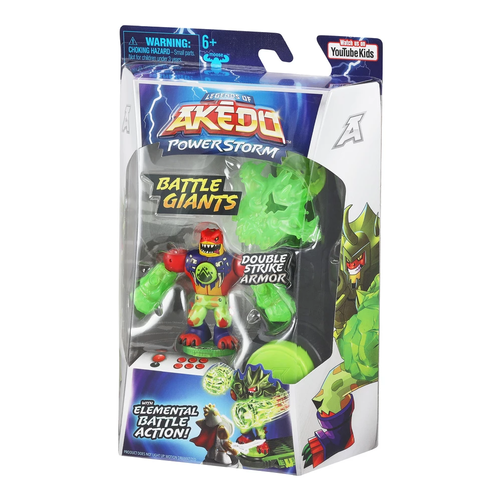 Get ready for some SUPER SIZED Elemental Battle Action with the Legends of Akedo Powerstorm Giants! Tremor Fist Tailwhip is Boosted with Elemental Powers! This Dinosaur was born to cause damage and has double the defence with Double Strike Armour! There are now 3 Giant’s fighting styles – Four-armed Fury Action, Super Slugger Action and the new Wrecking Fists Action! Use Tremor Fist Tailwhip’s Elemental Battle Action to perform the perfect “Split Strike”! There are 4 new Giant Battling Warriors to collect and battle with throughout the Powerstorm Series. Challenge your friends as you battle to become the Ultimate Arcade Warrior with Powerstorm Giants! Ready! Fight! Split Strike!