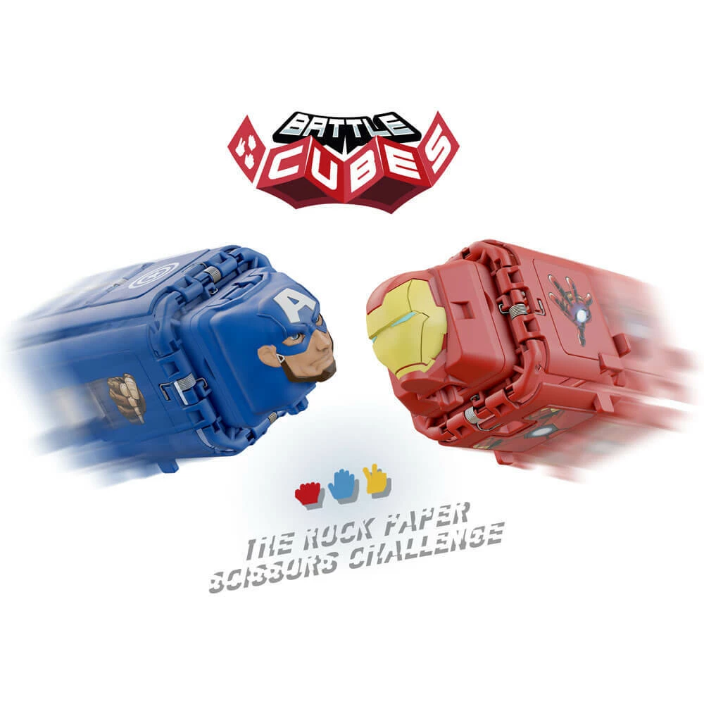 Battle Cubes is a collectible pocket-sized battle game where you challenge opponents on a rock-paper-scissors fight like never seen before! Battle Cubes are available in two super cool versions: Marvel Avengers and Spider-Man. Step 1: Select your secret attack, 2: Set your cube in battle mode, 3: Slide your cube against your opponents! Winner gets the token and the loser gets captured! Tokens are included with each pack- trade them or win by playing. Every token is a puzzle piece. There are 12 rare tokens to collect and 48 tokens to collect and play. The Avengers display unit includes 4 assortment packs of Iron Man vs Thor, Captain America vs Black Panther, Hulk vs Black Widow and Loki vs Thanos. Each pack contains 6 tokens.