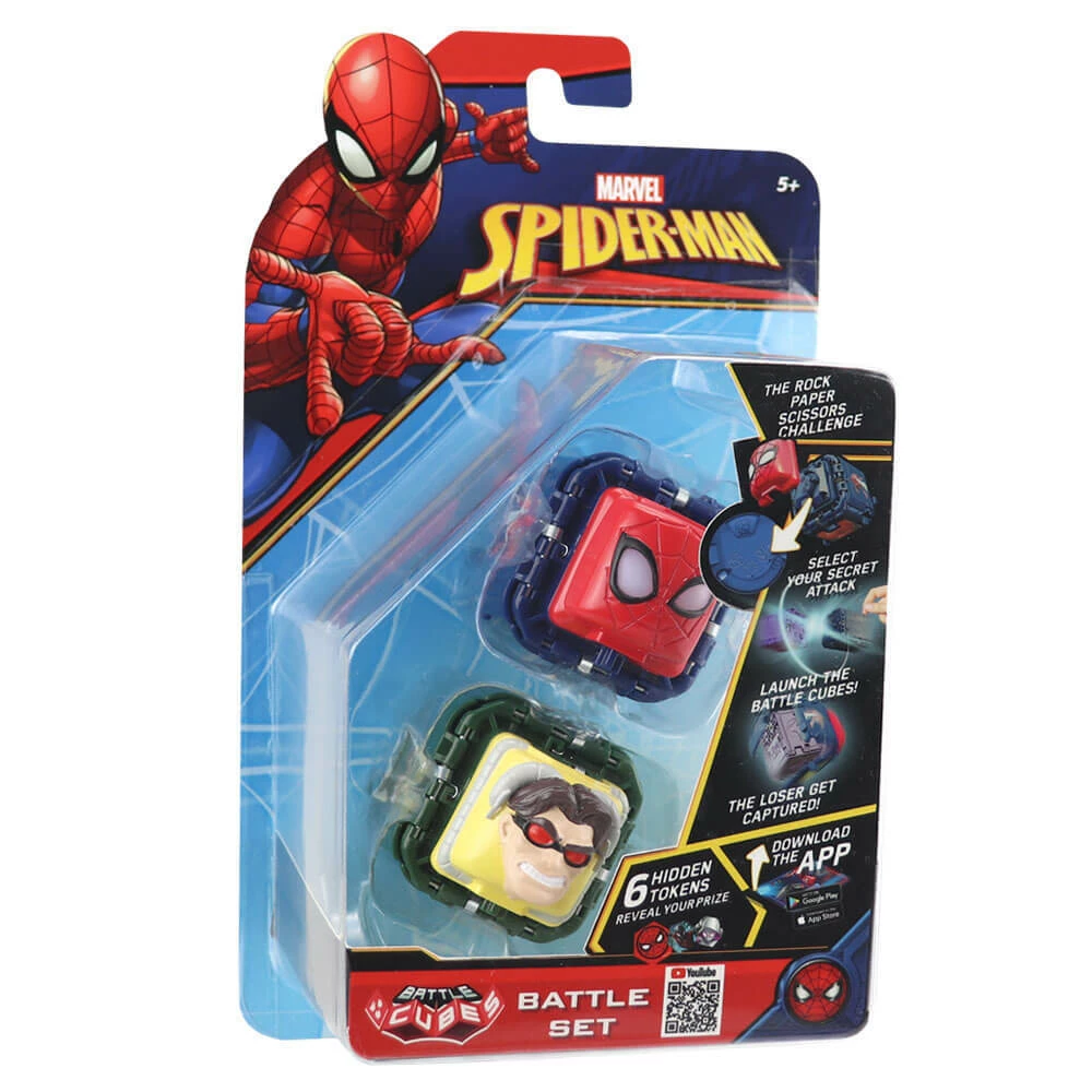 Battle Cubes is a collectible pocket-sized battle game where you challenge opponents on a rock-paper-scissors fight like never seen before! Battle Cubes are available in two super cool versions: Marvel Avengers and Spider-Man. Step 1: Select your secret attack, 2: Set your cube in battle mode, 3: Slide your cube against your opponents! Winner gets the token and the loser gets captured! Tokens are included with each pack- trade them or win by playing. Every token is a puzzle piece. There are 12 rare tokens to collect and 48 tokens to collect and play. The Spider-Man display unit includes 4 assortment packs of Spider-Man vs Venom, Spider-Gwen vs Green Goblin, Miles Morales vs Rhino and Glow Spider-Man vs Octopus. Each pack contains 6 tokens.