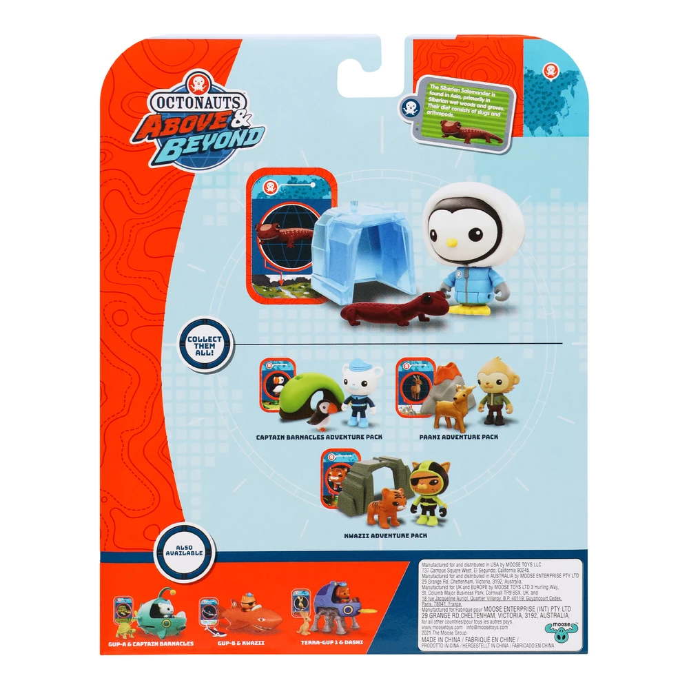 Recreate your favourite Octonauts Above & Beyond scenes and adventures with Octonauts Adventure Packs. Each one is an “Episode In A Box”! Every pack is based around a popular Octonauts episode. In this Adventure Pack Peso is in their Arctic Rescue Snowsuit. Sound the Octo-Alert and help the Siberin Salamander in Octonauts Above & Beyond episode – “The Octonauts and the Siberian Salamander”. This pack includes a 2.65″ deluxe Peso figure with moving arms and legs, Ice Enclosure, Siberian Salamander and a Mission Card. KIds will love to recreate the episode from the series using these fabulous toys to create their own adventure with the enclosed Mission Card. Choose from 4 different Adventure Packs! All pieces works with other Octonauts Playsets, Figures & Vehicles. Collect them all and build up the world of The Octonauts at home!