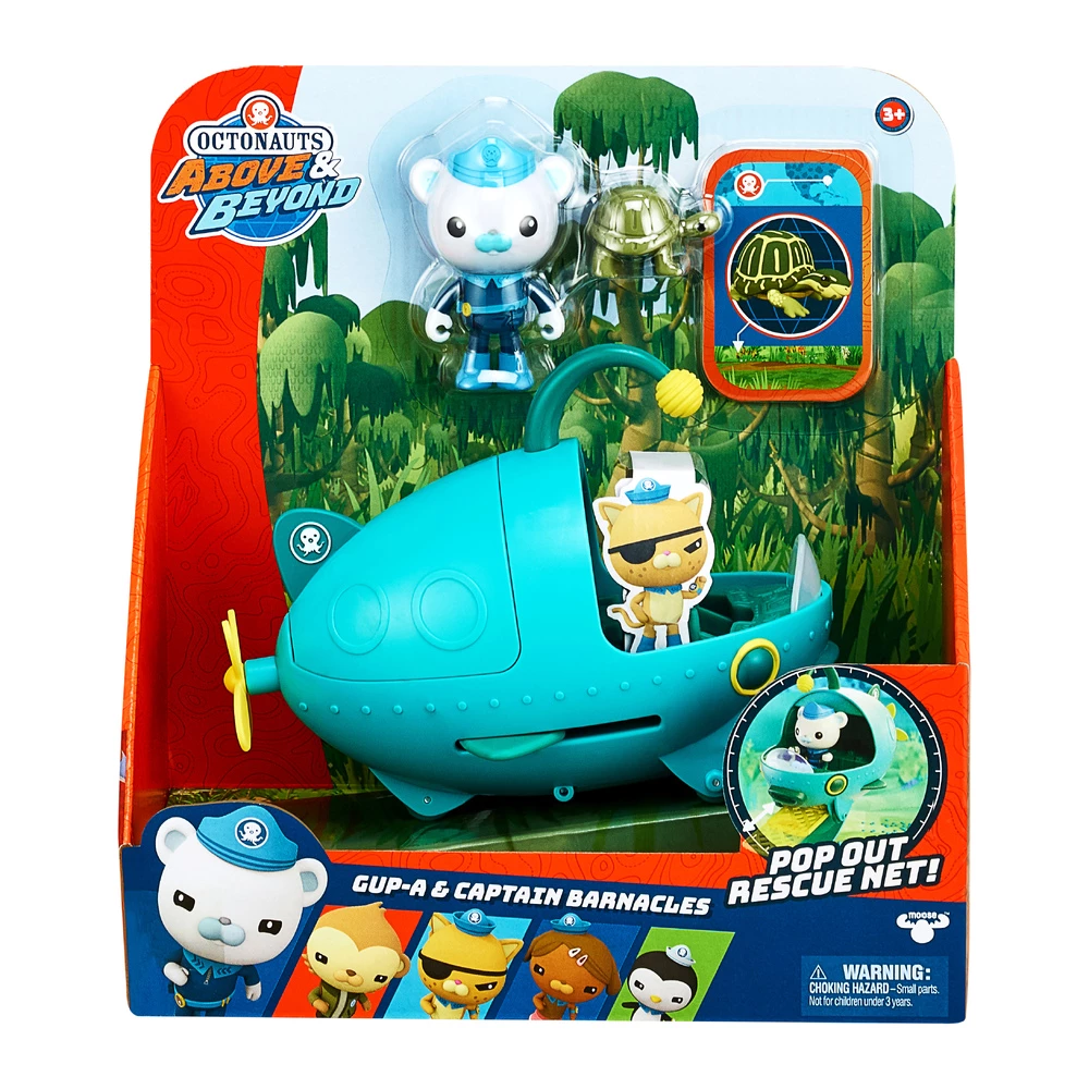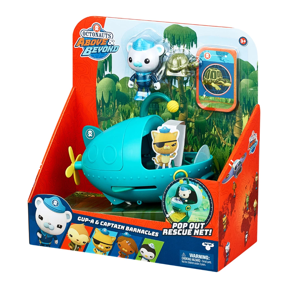 Recreate your favourite Octonauts Above & Beyond adventures with Captain Barnacles and the iconic Gup-A. This awesome Figure and Vehicle Set includes a detailed 3″ Catain Barnacles Figure. The Gup-A is shaped like an Angler Fish and is suitable for all water environments. Place Captain Barnacles inside the Gup-A and speed off with the Propeller, save the Florida Box Turtle with the Net and take them to safety in the Gup-A’s hatch. Every pack also has a MIsiion Card which reveals the type of mission your Octonaut needs to complete. All pieces work with other Octonauts Playsets, Figures & Vehicles. Collect them all and build up the world of The Octonauts at home!