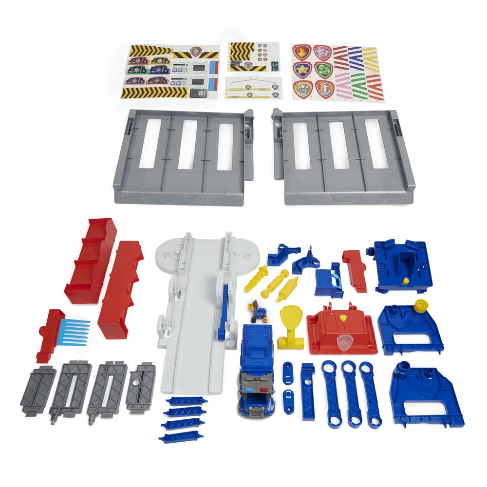 The Big Rig Pups are ready for another super charged adventure in their PAW Patrol Big Truck Pups – Truck Stop HQ playset! Featuring exciting lights and sounds from the show, the Truck Stop HQ features an exciting transformation, extending over 3’ Feet Wide, to create enough room for Chase and the rest of the pups, in their Big Rig trucks! (sold separately) When Chase arrives at the HQ, place him into the control room then raise it up, to expand the HQ and transform into rescue mode! Then, once in rescue mode, hop in the truck and stop by the tune-up station to get a fill-up, before taking a trip through the HQ carwash. When your toy truck is ready for action, load it into the center bay and use the Big Rig launcher to blast off on your next heroic mission!