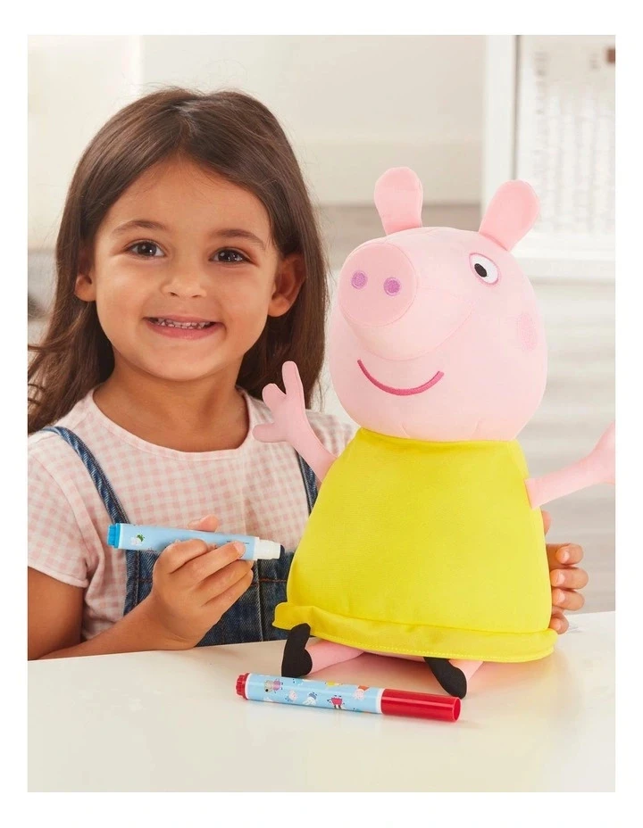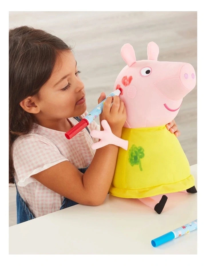 Have lots of colouring fun with Colour Me Peppa! This Peppa Pig Soft Toy features classic Peppa Pig styling and measures 30cm tall. Draw and doodle on Peppa and her dress. When youve finished, simply wash her and start again! Includes 2 pens. Make sure you use these or other washable pens only. Encourages creative and imaginative play. Machine wash Peppa separately, hang to dry and reshape.