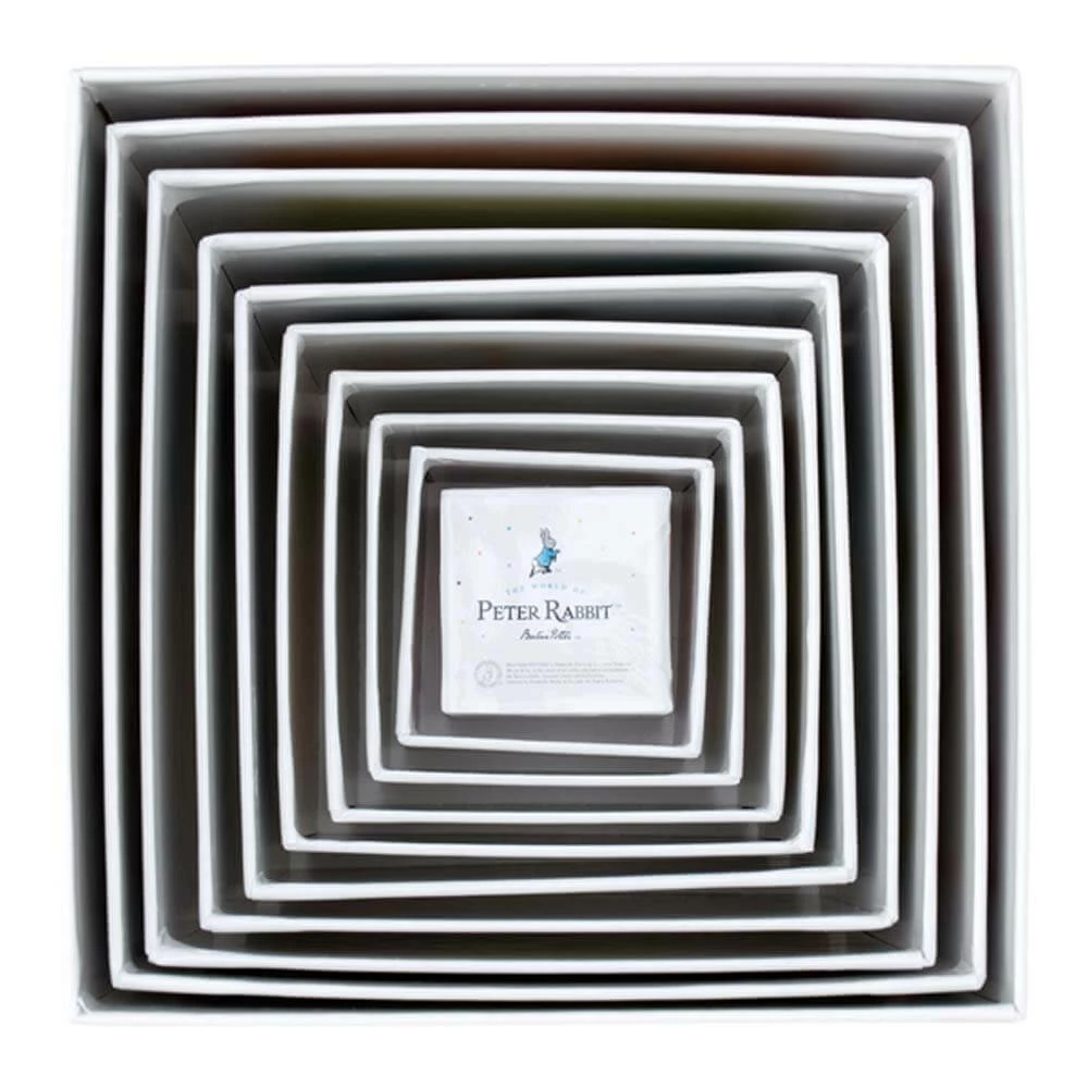 This set of 10 building blocks from Beatrix Potter offers hours of fun and learning! Constructed from coated paperboard and with a nesting capacity for easy storage, these beautifully illustrated blocks aid in recognition of numbers, alphabet letters, colours, characters, shapes and sizes.