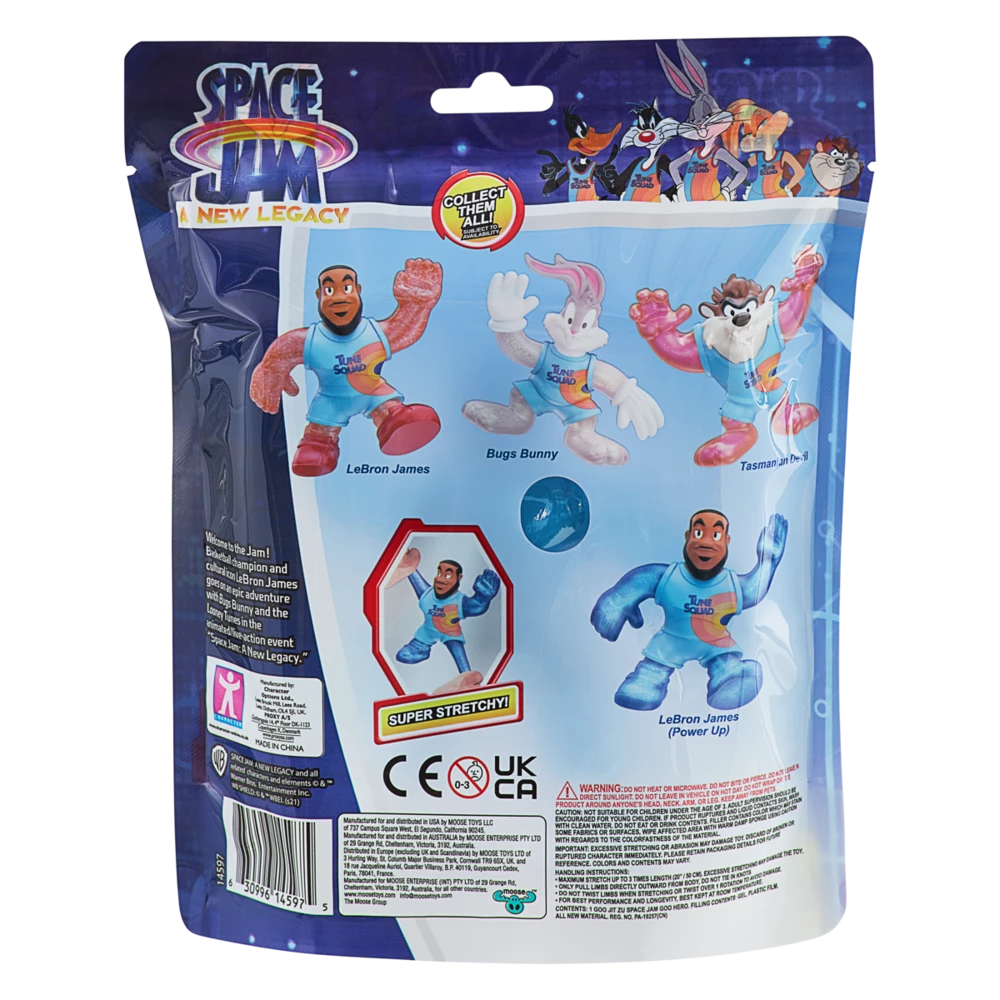 These Space Jam: A New Legacy Goo Heroes are each filled with a unique goo that is super squishy, stretchy or gooey and lets your toy Figure stretch up to 3 times its normal size! There is 4 Space Jam: A New Legacy Goo Hero Action Figures to collect, each with different Goo fillings, including Bugs, Taz and a special Power Up LeBron James. (sold separately) Collect them all!