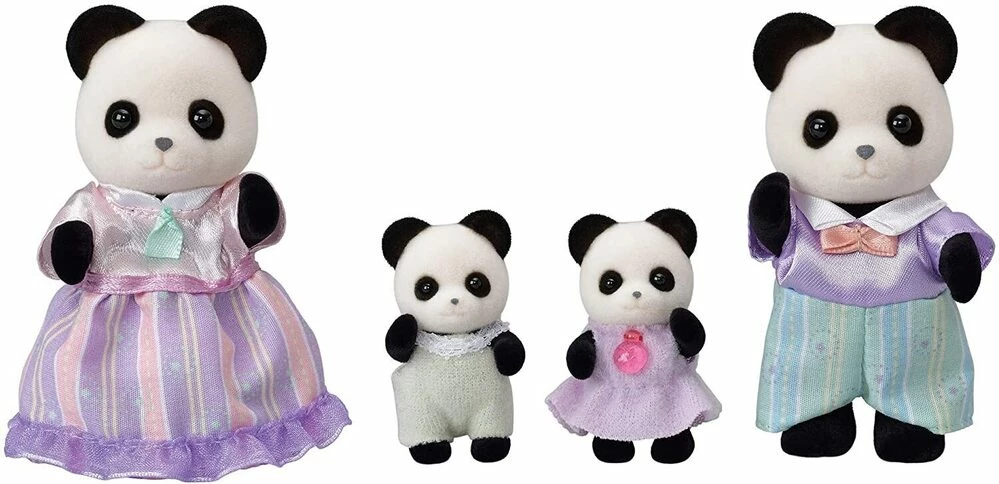 The Pookie Panda Family figures in dreamy cute clothes. This set includes four figures: Father, mother, and two babies. You can move the heads and limbs of these figures to put them in different poses.