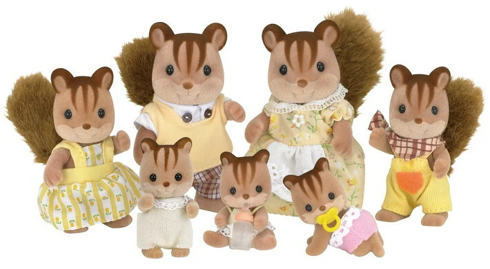 Meet the Walnut Squirrel Family. Cedric Walnut likes carpentry, and is very good at it! He’s always coming up with unique things to make for other Sylvanians. He makes lots of surprising things that nobody has ever seen before. Only his family know that he’s had a lot of projects that turned out badly too – he keeps those hidden in his store room!