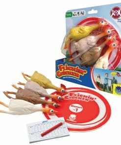 They bounce, they roll, but can you hit the target? Flickin’ Chicken is the go anywhere game that is perfect for backyard fun. Throw the target disc and then take turns throwing your rubber chickens. Each throw counts as a point, so be careful, bonus and penalty points can change everything. The player with the lowest score wins!