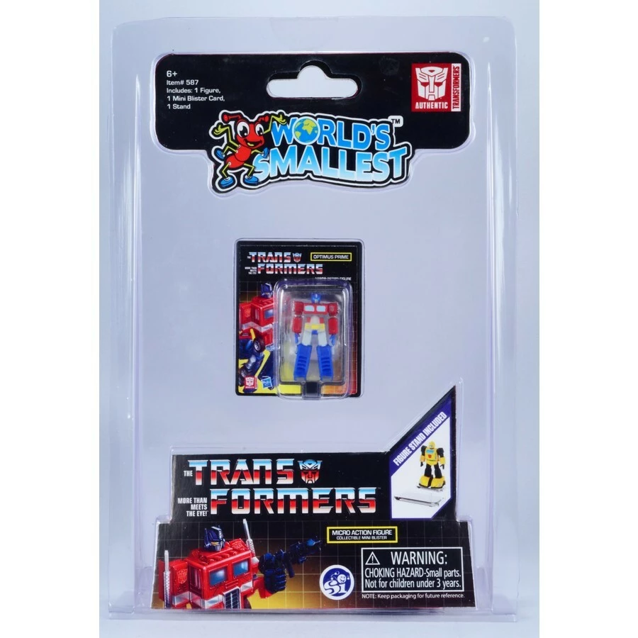 Collect the World’s Smallest Transformers Action Figures! This assortment of highly detailed micro action figures comes with three points of articulation. Includes a replica of the classic original action figure blister card for display. There are 3 retro styles to collect; Optimus Prime, Bumblebee, and the evil Starscream. Collect them all!